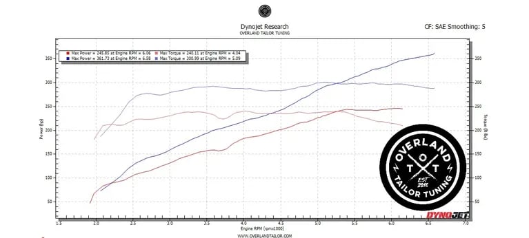 Dyno Comparison: Ott Magnuson Calibration 10/2022 vs. Stock for the 2022 Tacoma